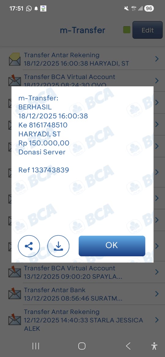 | 3 | 18-12-2025 | Rp 200.000,- | - | Donasi Server dari JZ13WIU | Ada | - |