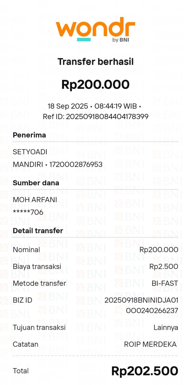 6 | 18-09-2025 | Rp 200.000,- | - | Donasi Server RoipMerdeka dari JZ11EFN Moh Arfani | Ada | - |