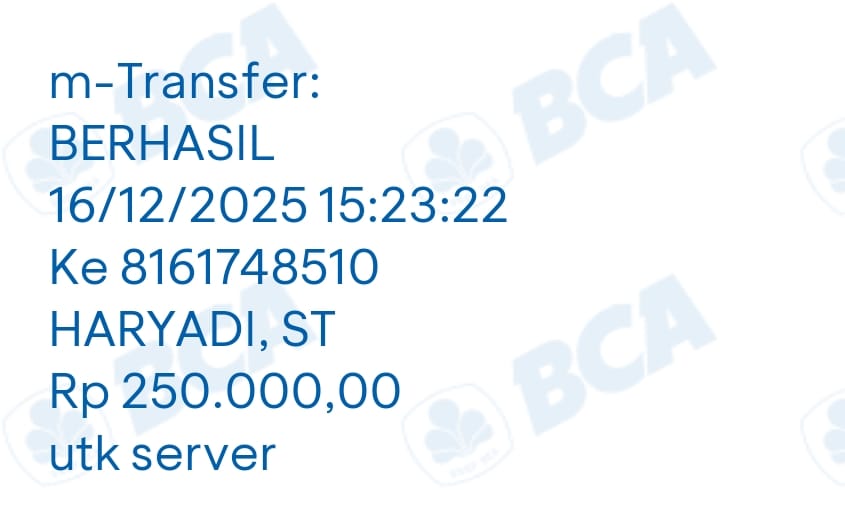 | 7 | 16-12-2025 | Rp 250.000,- | - | Donasi Server ROIP MERDEKA dari JZ18ACN | Ada | - |