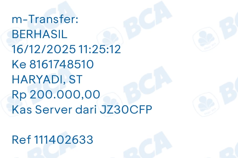 | 85 | 04-08-2025 | Rp 200.000,- | - | Donasi kas server dari JZ30CIC | Ada | - |