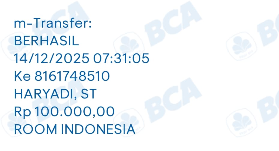 | 505 | 16-11-2020 | Rp 175.000,- | - | Pembayaran Interface dari JZ11YLS untuk room Indonesia | Ada | - |