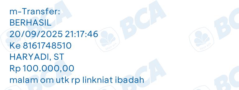 57 | 01-08-2025 | Rp 100.000,- | - | Donasi kas server dari JZ11BNG | Ada | - |